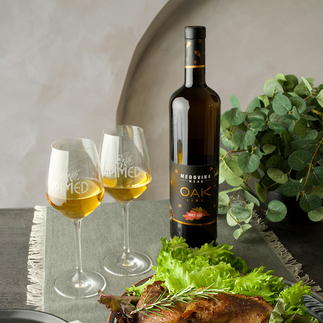 OAK Line KVET-LES je prémiová medovina zlatožltej farby vyrobená z kvetového a medovicového medu z limitovanej edície medovín dozrievaných dva roky v 2000 litrových dubových sudoch. Bohatá plná vôňa po sušených hrozienkach a slivkách je umocnená delikátnou chuťou lesného medu s jemnou dochuťou vanilky z dubového dreva.
