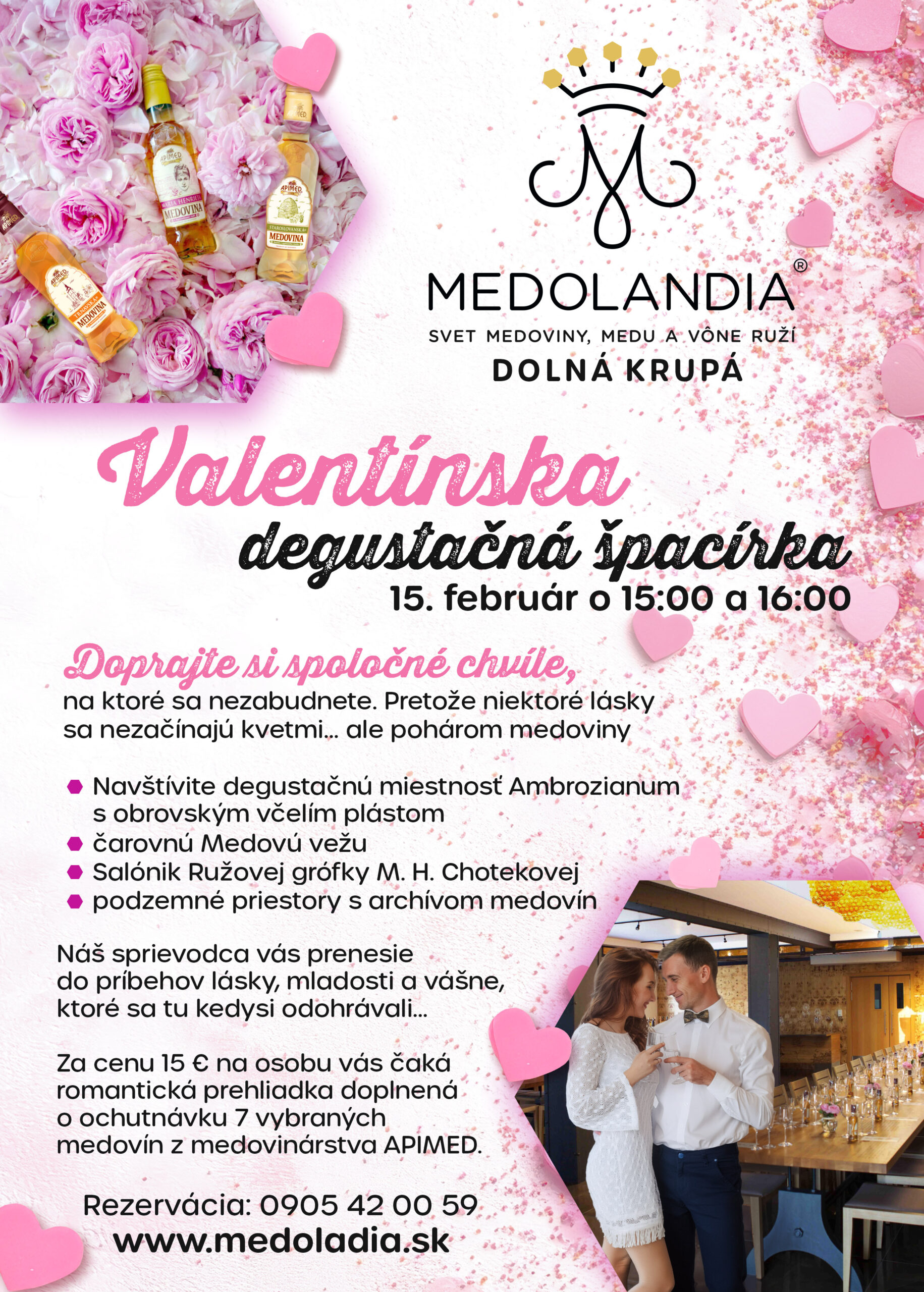 Ak ste šofér a absolvujete Valentínsku špacírku bez ochutnávky medovín, cena je 7€ / osoba