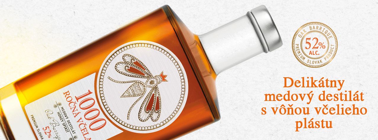 Destilát 1000 ROČNÁ VČELA 52% vás zláka nielen svojim názvom, ktorý je úzko spätý so životom a tradíciami slovenského národa, ale predovšetkým vôňou včelieho plástu. Zacítite ju už pri prvom privoňaní a prevaľovaní nápoja v ústach.